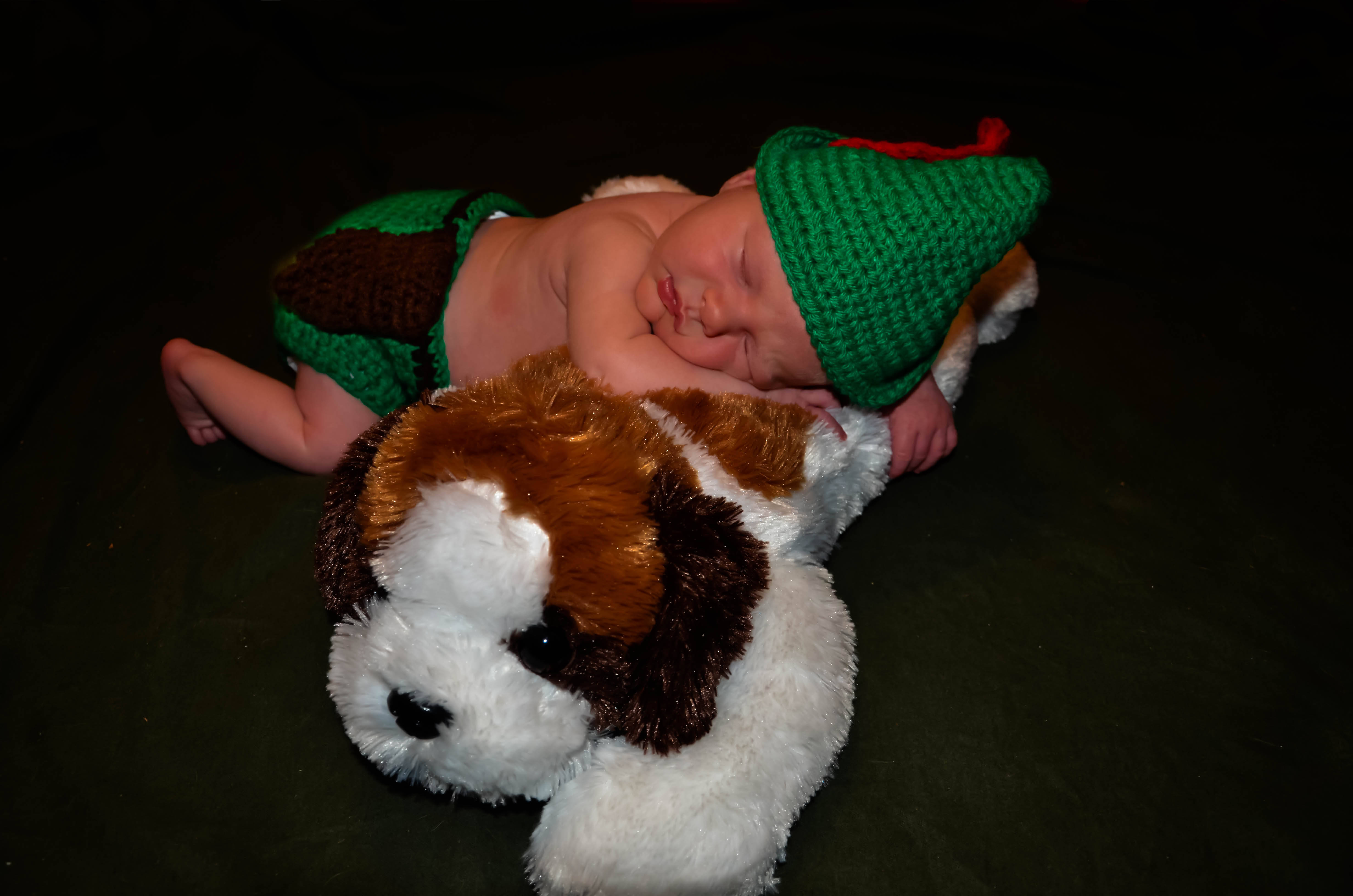The costume was hand made a gifted to us by Pine Stone Stitchery and I crocheted the hat myself.
