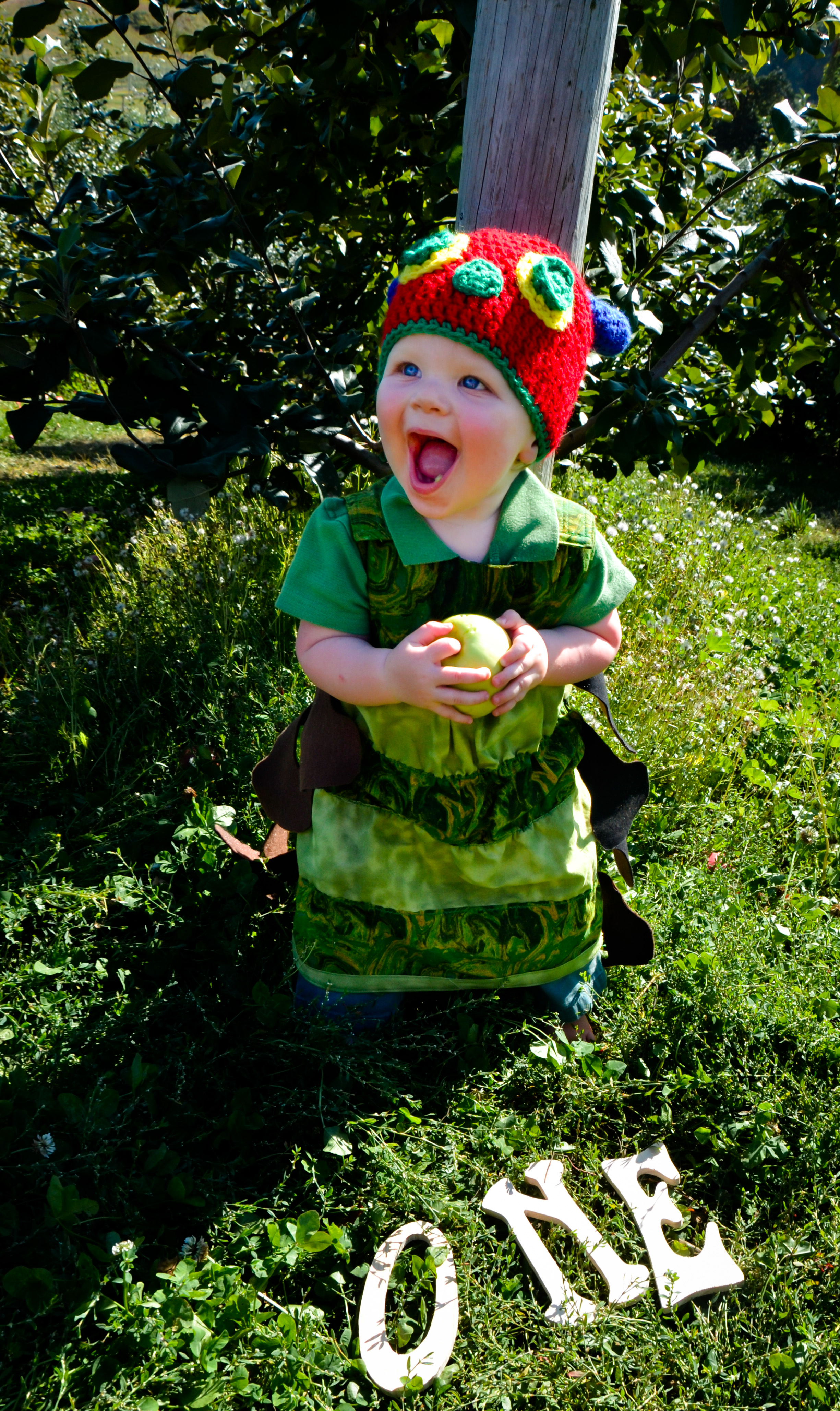 As soon as I heard a Very Hungry Caterpillar, I had an image of my son dressed as the Hungry Caterpillar, munching on an apple in an orchard. So, of course, that’s why I did for his first birthday photo shoot! We also picked a LOT of apples that were used in desserts and as part of the decorations for the party.